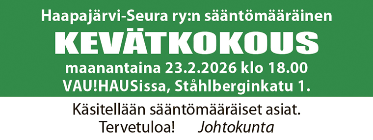 HAAPAJÄRVI-SEURA TOIVOTTAA