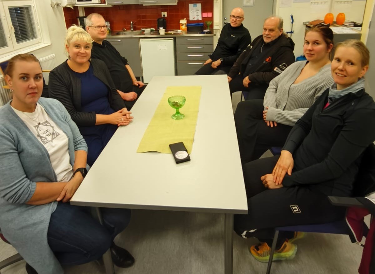 Kuvassa vasemmalta Kirsi Pirinen, Mira Carlenius, Teemu Alapeteri, Tero Liljeblad, Mauri Tenkula, Maria Ollila ja Elina Törmänen