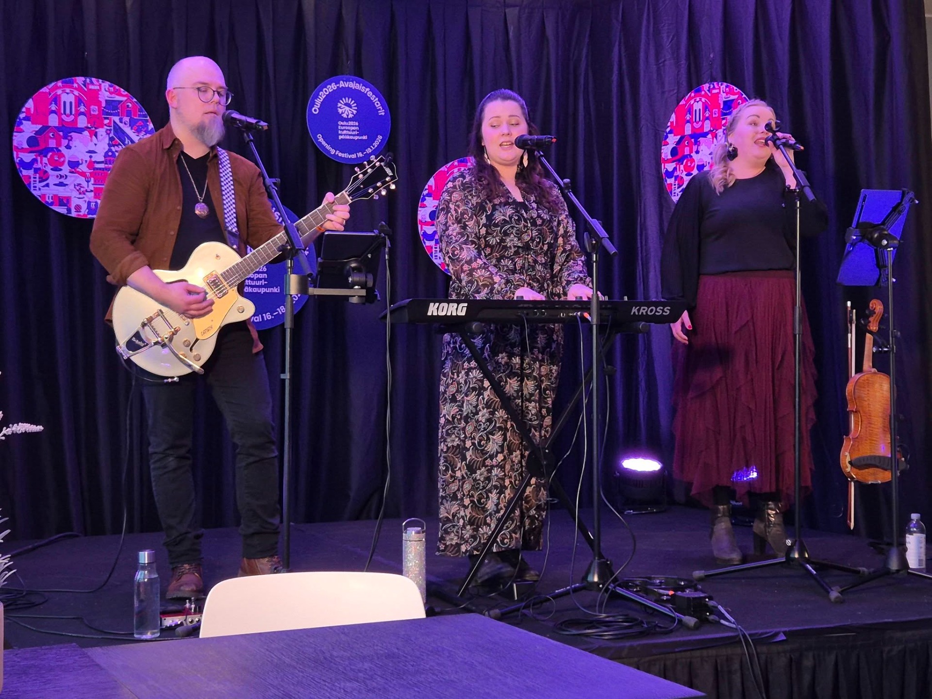 Kaupunginjohtajakin kävi pisteellä ja löysi mm. puistosta ideoita ensi syksyn valotapahtumaan. Haapajärven kirjaston työntekijä Mia Niemelä esiintyi avajaisfestareilla lauantaina yhdessä Oulun Eteläisen lausujien kanssa. Sunnuntaina lavan valtasi Loihtima.