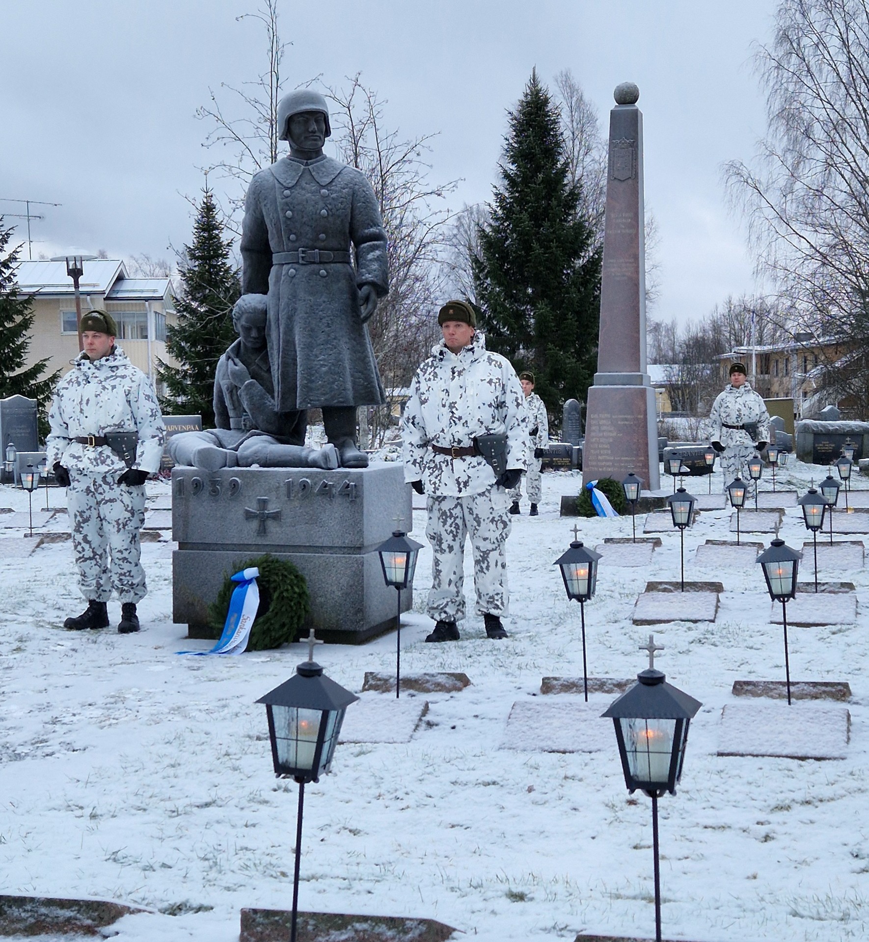 Viime vuoden itsenäisyyspäivän kunniavartiot sankarihautausmaalla. Kuva Soili Pentikäinen.