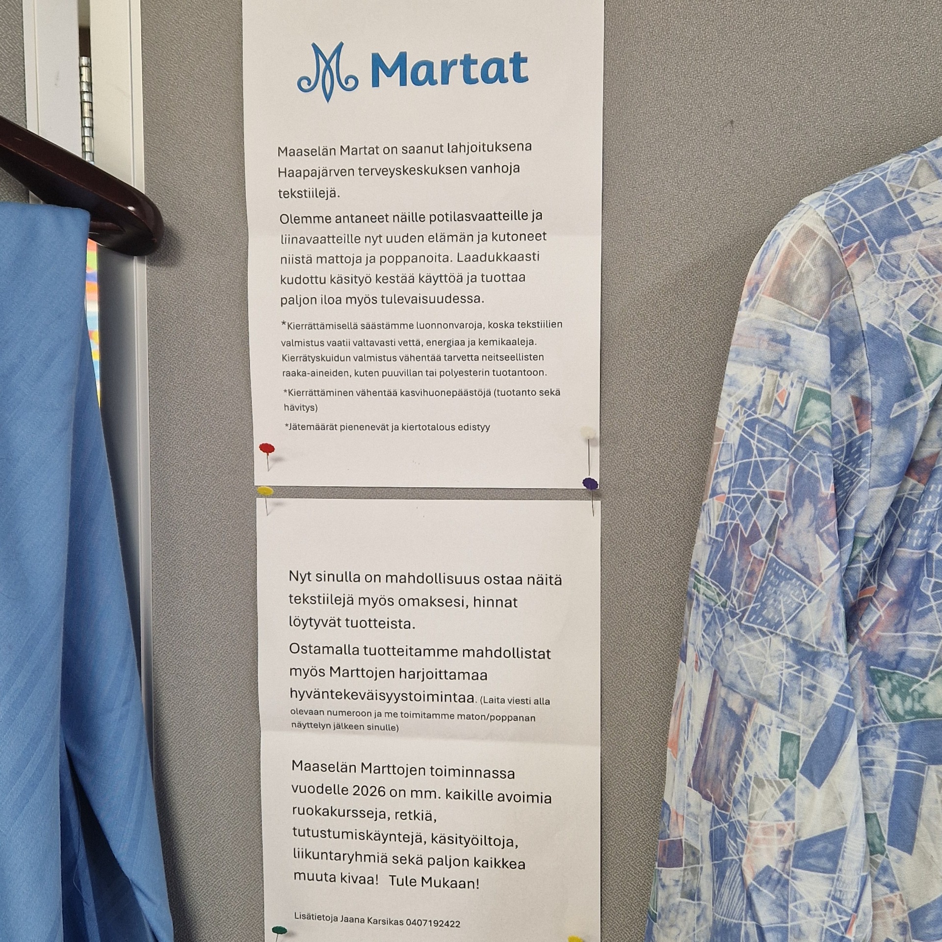Tänä vuonna opisto on tehnyt yhteistyötä Maaselän Marttojen kanssa. Vanhoista sairaalatekstiileistä on kudottu monenlaisia käsitöitä, jotka ovat myös myynnissä varojen keräämiseksi martoille. Martat ovat leikanneet tekstiilit talkooporukalla kuteiksi, jotka on sitten kudottu matoiksi ja muiksi käsitöiksi.