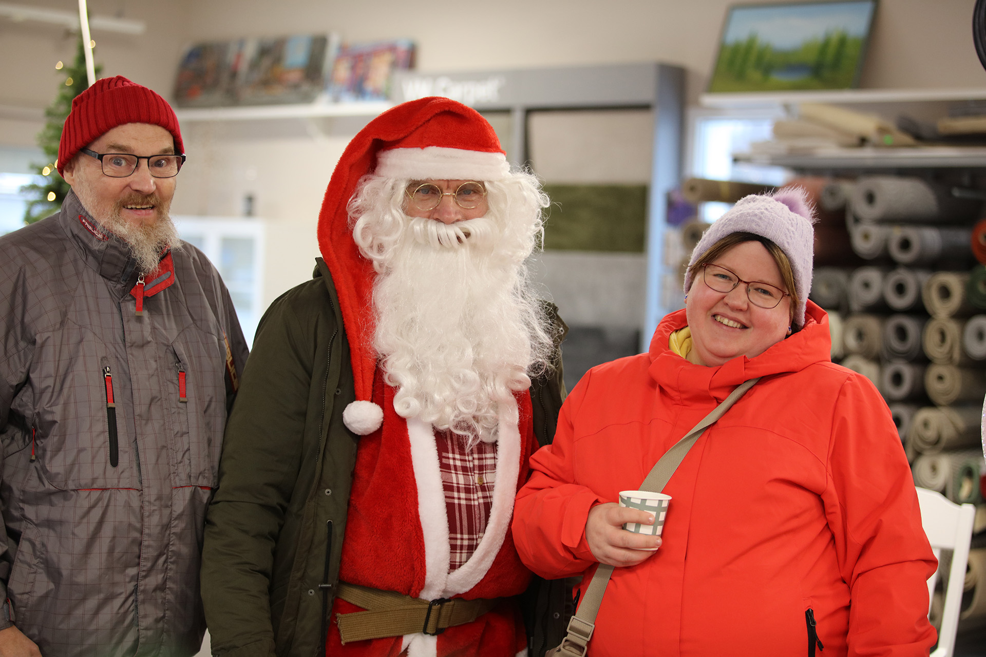 Pukin kanssa otettiin paljon selfieitä. Elina Leppäsaajo ja karjalansuomalainen Ilia Juho pääsivät pukin kanssa yhteiskuvaan.