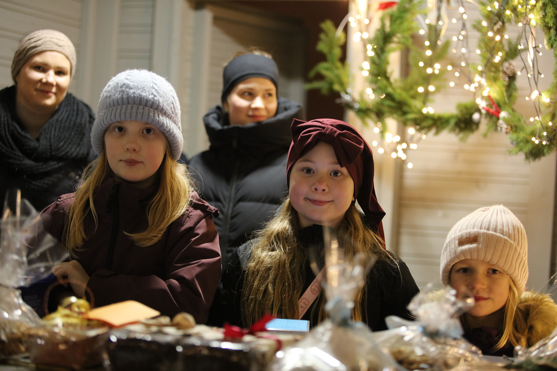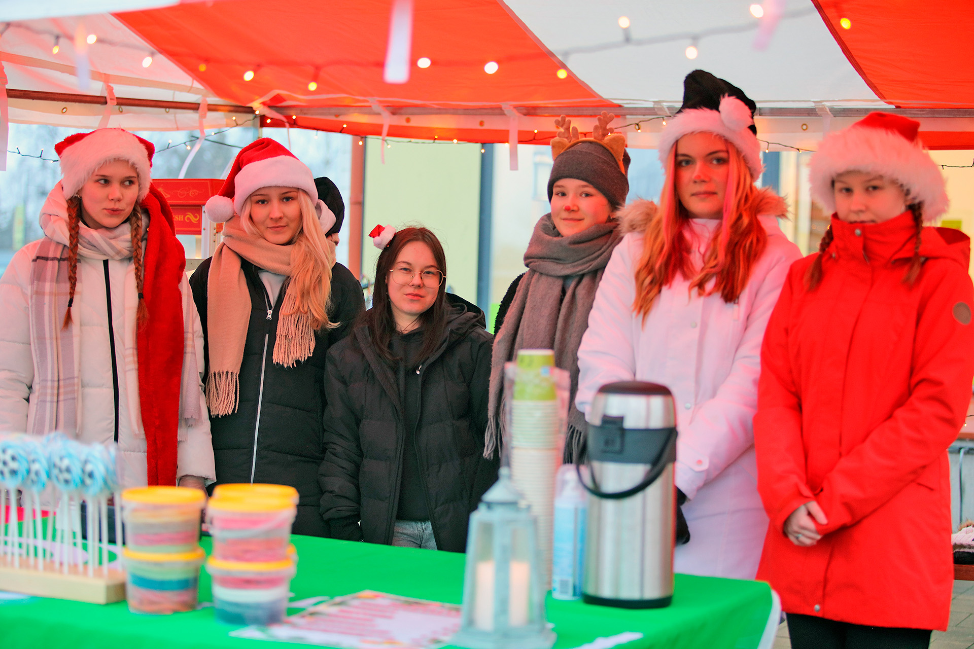 Joulunavauksen pääjärjestelyistä vastaavat JEDUn ammattiopiskelijat, joiden kioski oli torin reunassa. Pöydän takaa löytyivät Henna Holmström, Maaria Vähätiitto, Elli Hietala, Sofia Tiikkainen, Ella Jääskeläinen ja Tessa Hakkarainen.