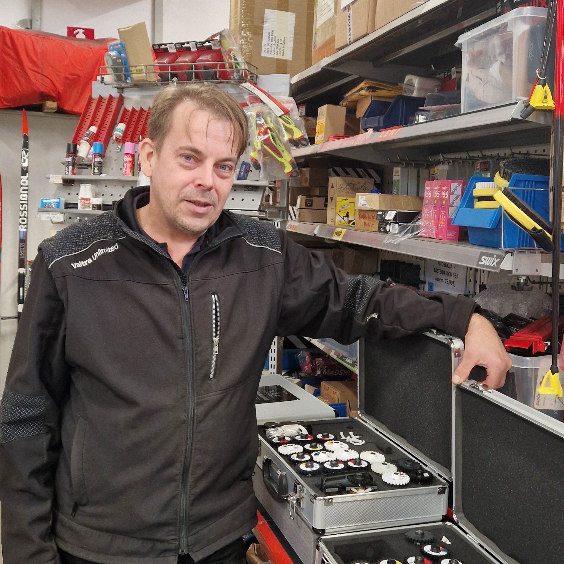 Hiihtomiehenä tunnetulta Markulta löytyy myös muiden valmistajien hiihtotarvikkeita ja voiteita. Markku haluaa tällä myynnillä palvella haapajärvisiä ja alueen hiihdon harrastajia. Hänellä on myös suksien hiontalaite, jolla esimerkiksi saa kunnostettua käytettyjen suksien pohjia.