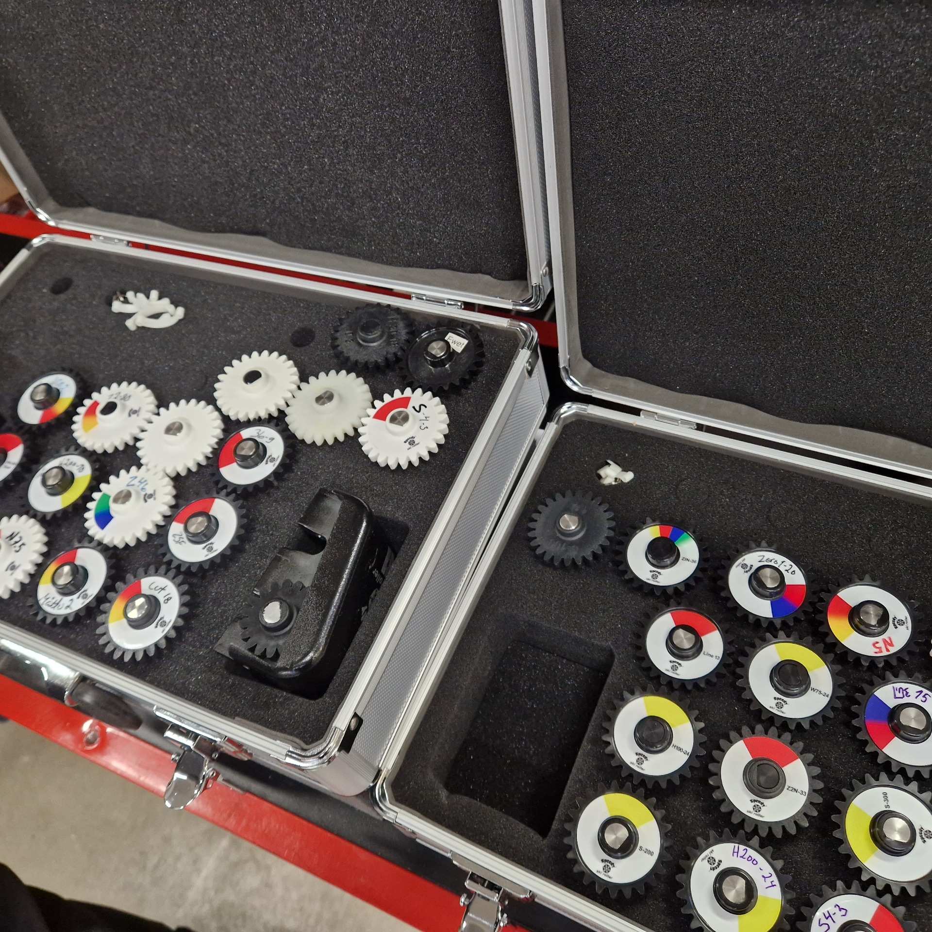 Speedy Ski Rollerin kuviointirullat ja -laite myydään monesti kätevissä salkuissa. Rullat on merkitty eurooppalaisilla värikoodeilla, jotka kuvaavat rullan käyttökeliä.