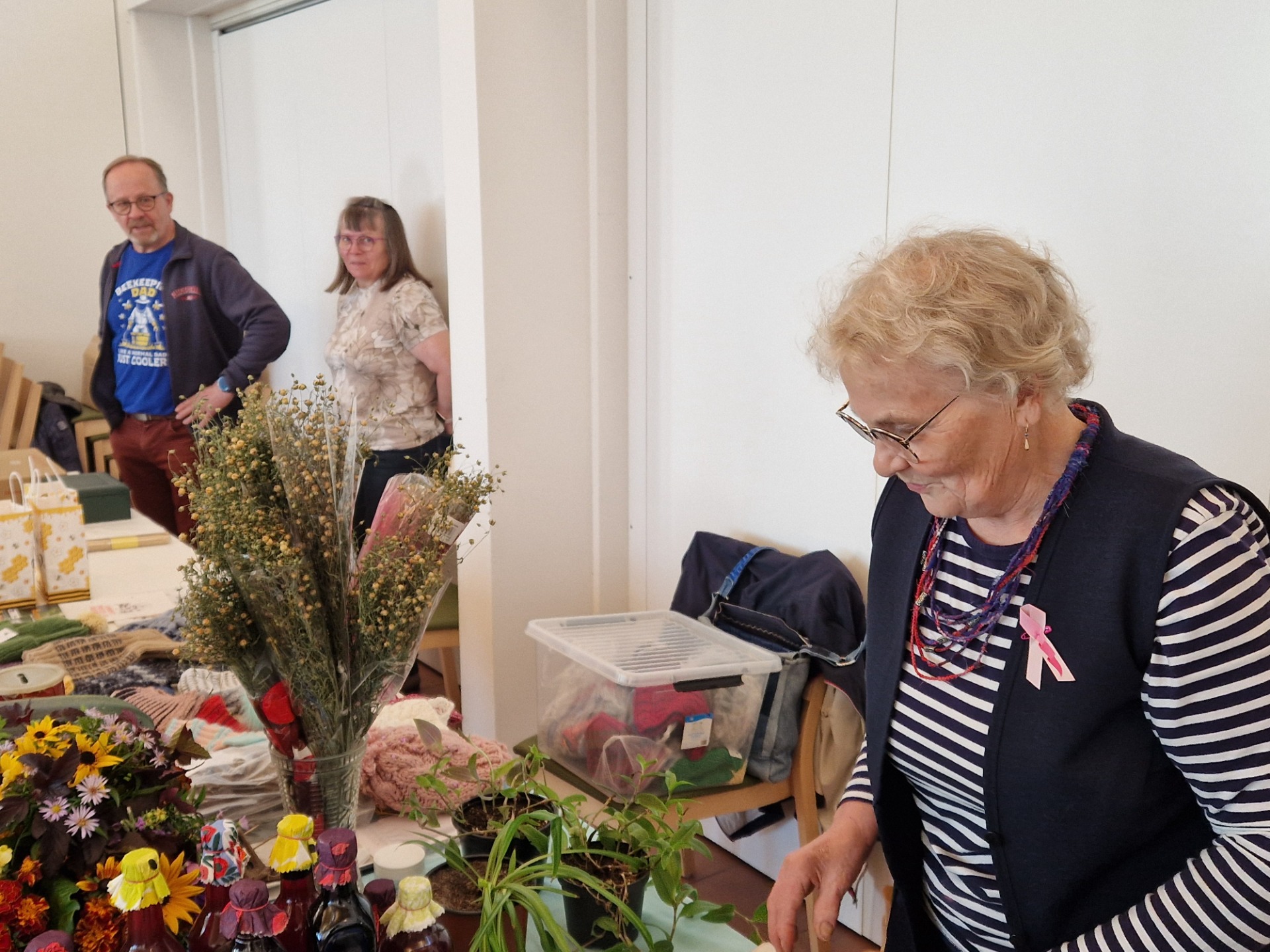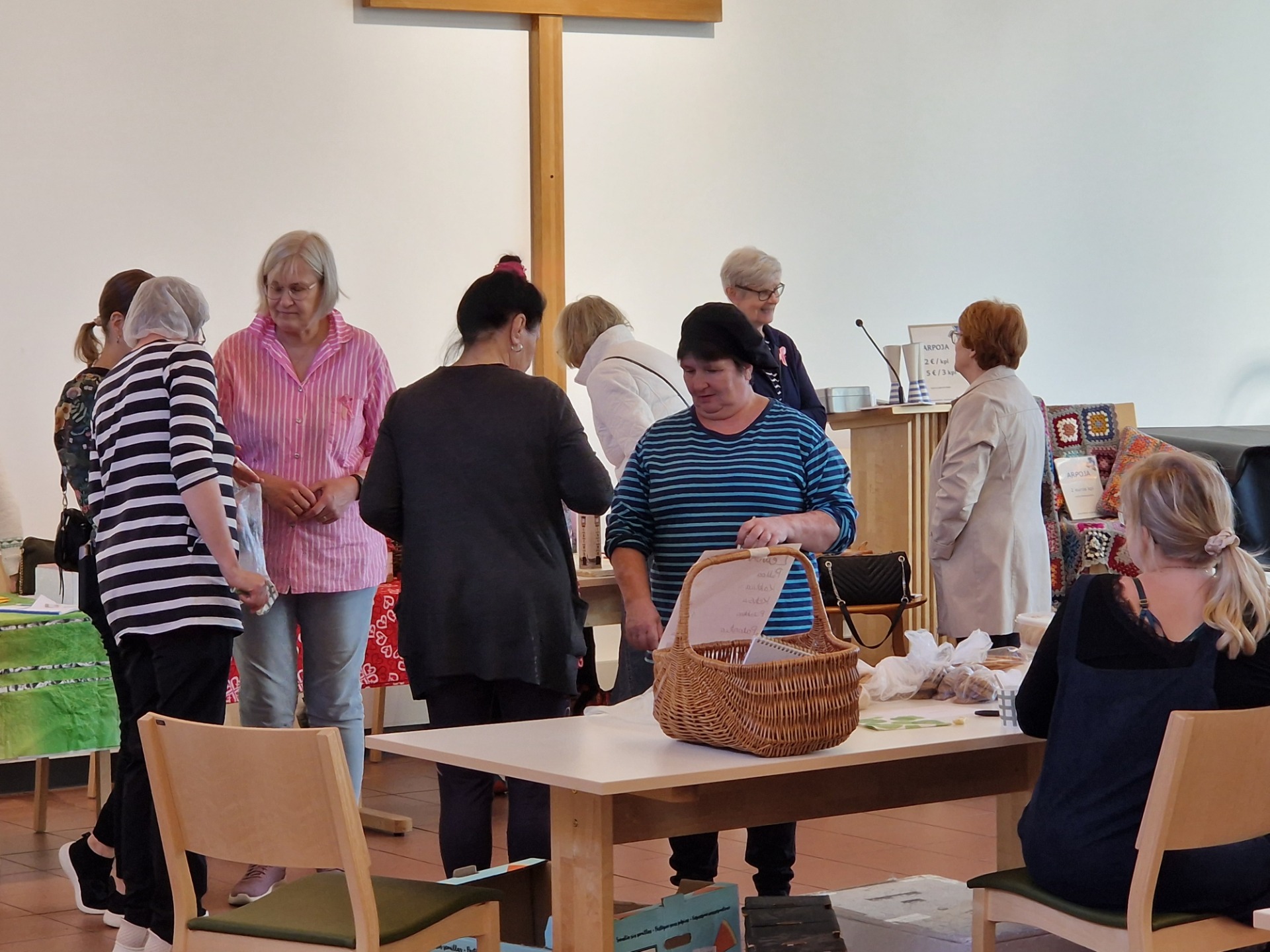 - Jauhot myytiin pikaisesti loppuun ja leivonnaistenkin myyntipöydät näkyvät tyhjenevän ennen tilaisuuden loppua. Myös syöpäyhdistyksen myymät Roosanauhat myytiin loppuun. Mukavasti on ollut väkeä liikkeellä, totesi iloisesti järjestäjiä edustava kaupungin kulttuurituottaja ja teetoimikunnan jäsen Soili Pentikäinen työn touhun lomassa.