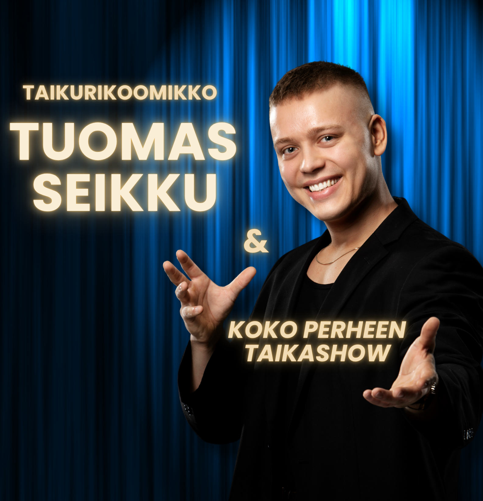 Sunnuntai-iltapäivä on lasten ja taikuuden. Taikurikoomikko Tuomas Seikku aloittaa taikashownsa klo 15 kulttuurisalissa. Ihmettelyä ja hämmästystä, ilonkiljahduksia ja säihkyviä silmiä on varmasti kulttuurisaliin luvassa, kun taikurikoomikko yhdistää taikuuden, huumorin ja musiikin luoden näin lämpimän ja välittömän tunnelman. Onkohan taikurin hatusta hyppimässä pupuja?