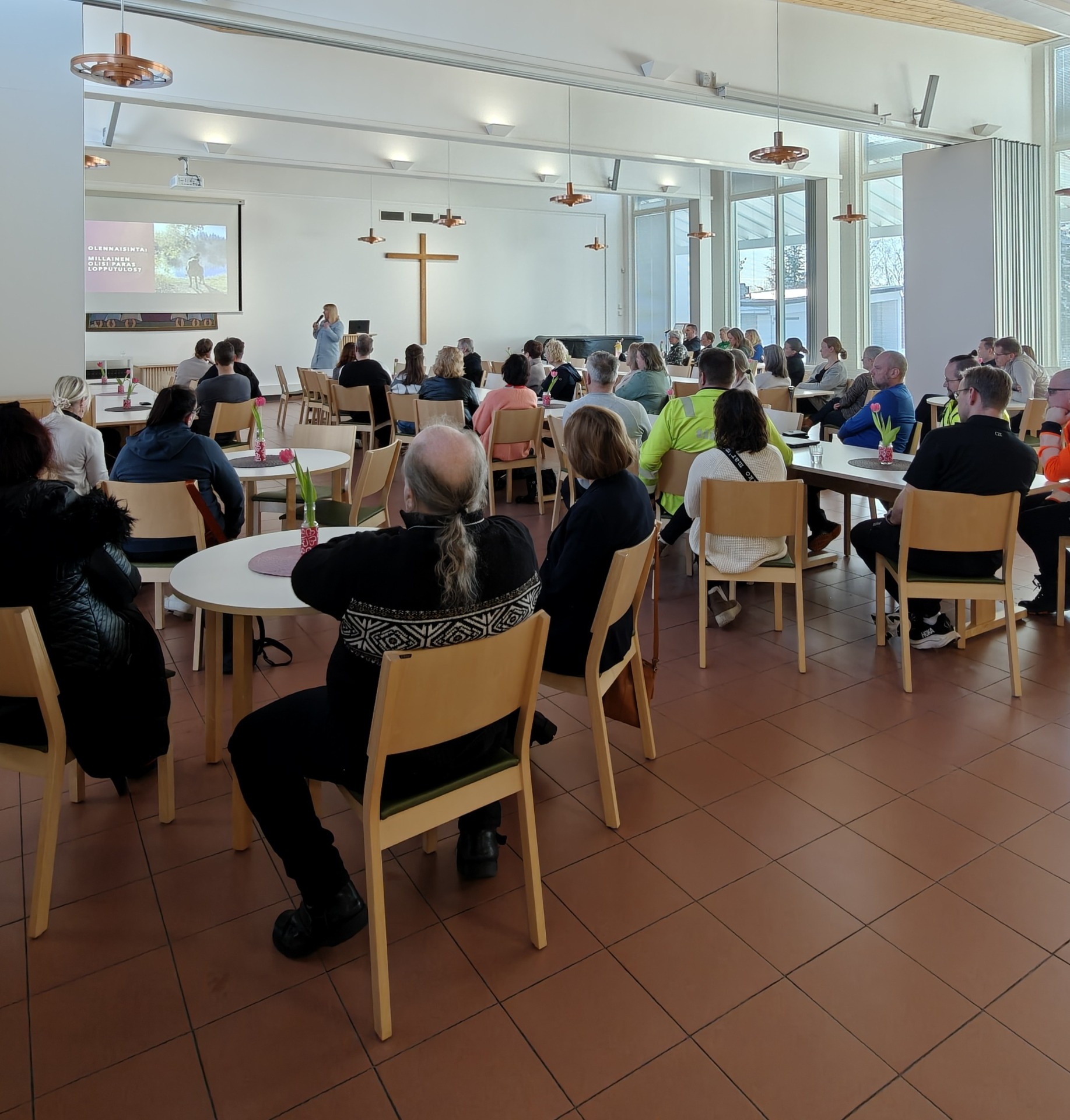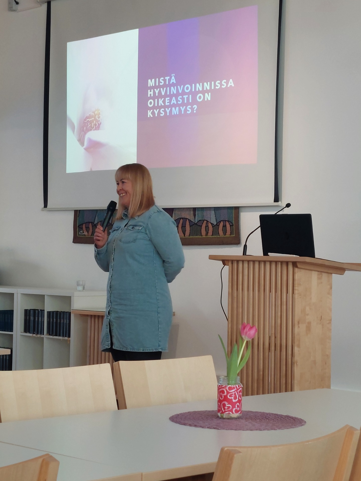Iltapäivän aikana kuultiin herätteleviä ja asiantuntevia puheenvuoroja työhyvinvoinnin eri näkökulmista. Puhujina toimivat työpsykologi Riikka Holappa, muutosvalmentaja Anu Ilmonen, työfysioterapeutti Maria Paananen sekä yrittäjä Mikko Kaarto. Teemoina olivat muun muassa johtaminen, palautuminen, fyysinen jaksaminen sekä arjen kuormituksen hallinta. Yleisö seurasi esityksiä tarkasti ja keskustelu tauolla oli aktiivista.