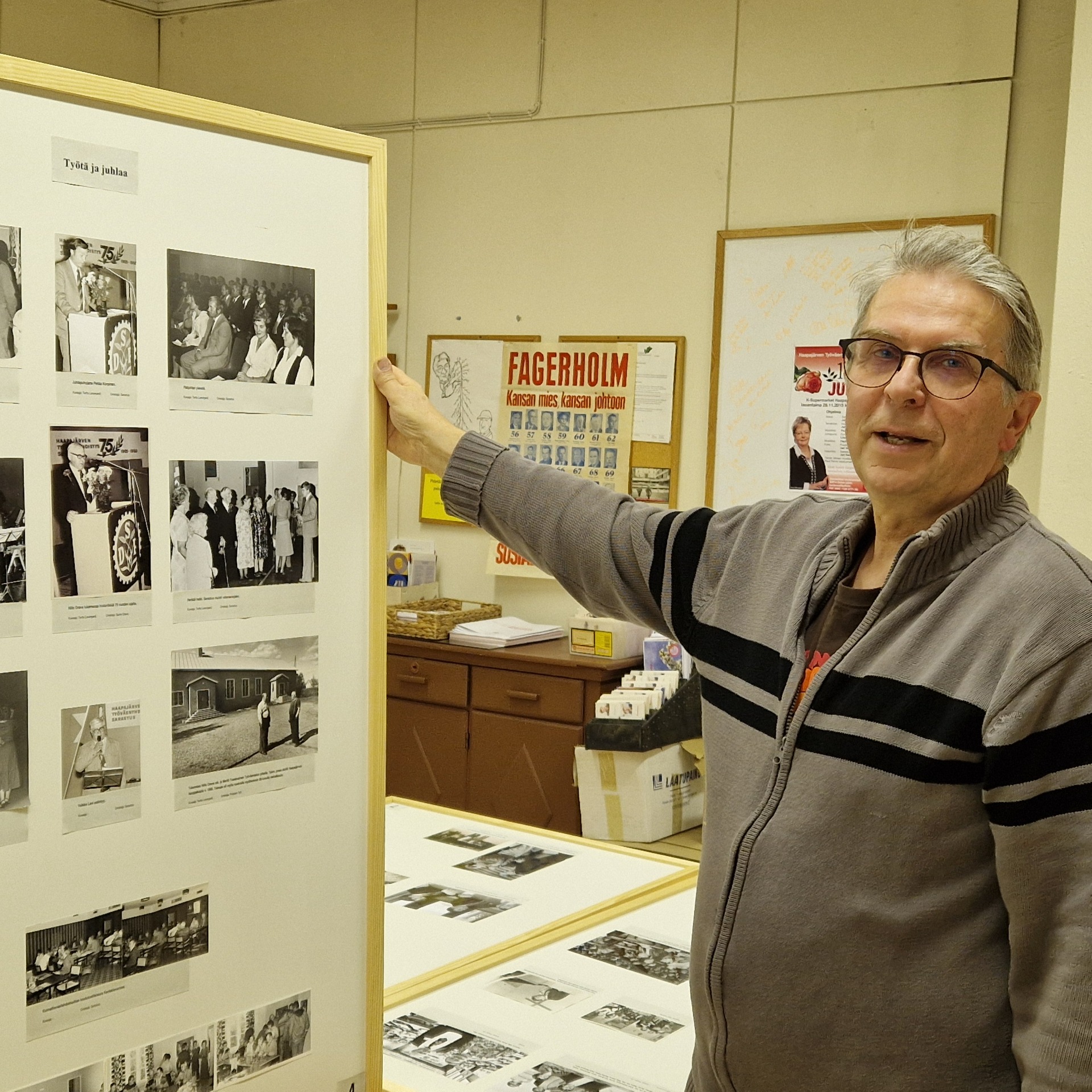 Jouni Brandt esittelee kokoamaansa valokuvanäyttelyä yhdistyksen historiasta