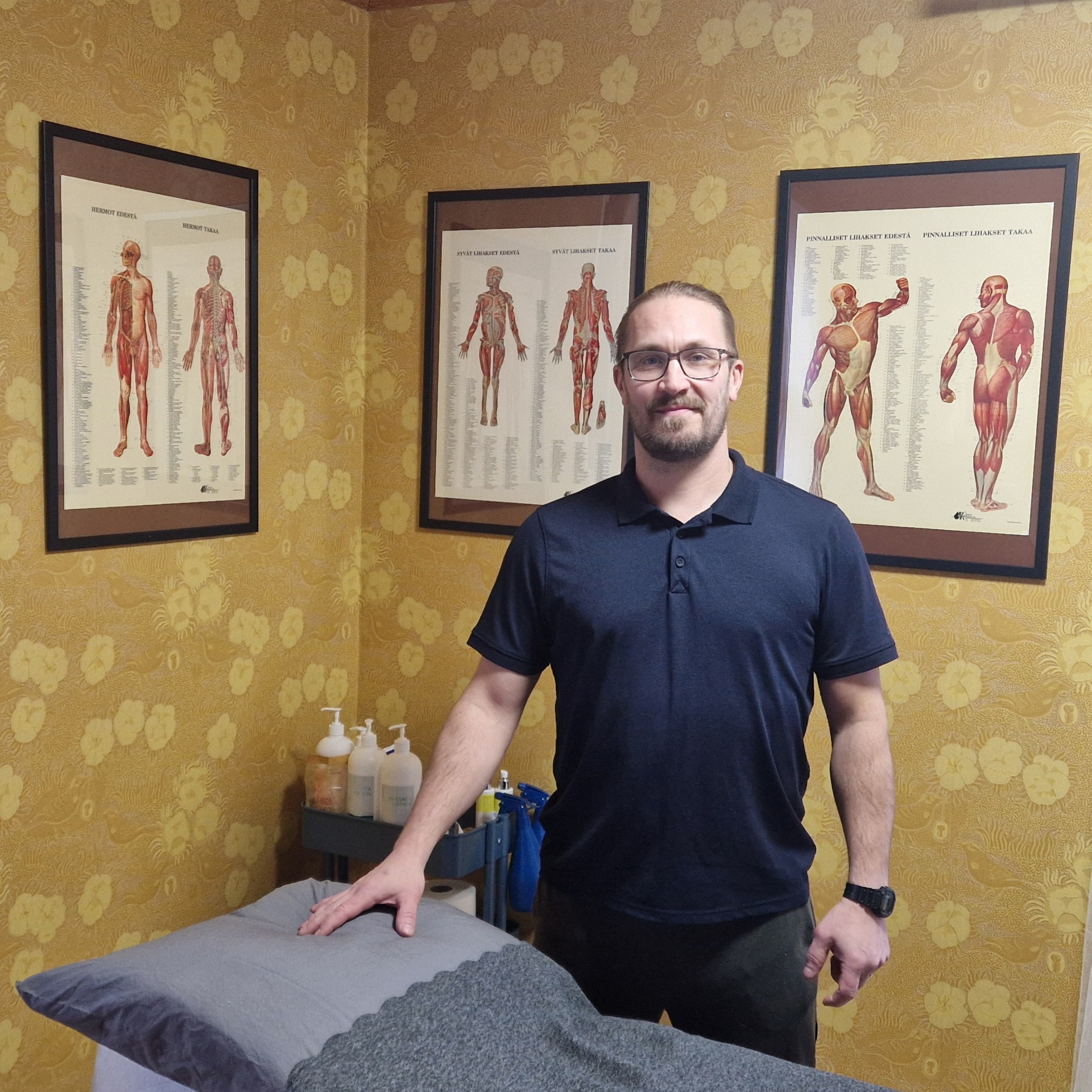 - Aikaisemmissa tiloissa ehdin hieroa lähes kaksi vuotta. Valmistuin koulutetuksi hierojaksi Kuopion ammattiopistosta kaksi vuotta sitten. Mukavasti olen saanut asiakkaita jo näinkin lyhyessä ajassa. Osa asiakkaista on tuttuja jo urheilijan vuosiltani. Teen hierojan hommia toistaiseksi osa-aikaisesti. Olen vuoroin kaksi viikkoa yrittäjänä ja kaksi viikkoa laitosmiehenä lämpölaitoksella. Ajan hierontaan voi varata vaivattomasti Vello-ajanvarauspalvelusta Jaki Hieronta -nimellä, tarkentaa Janne taustaansa ja palvelujaan.