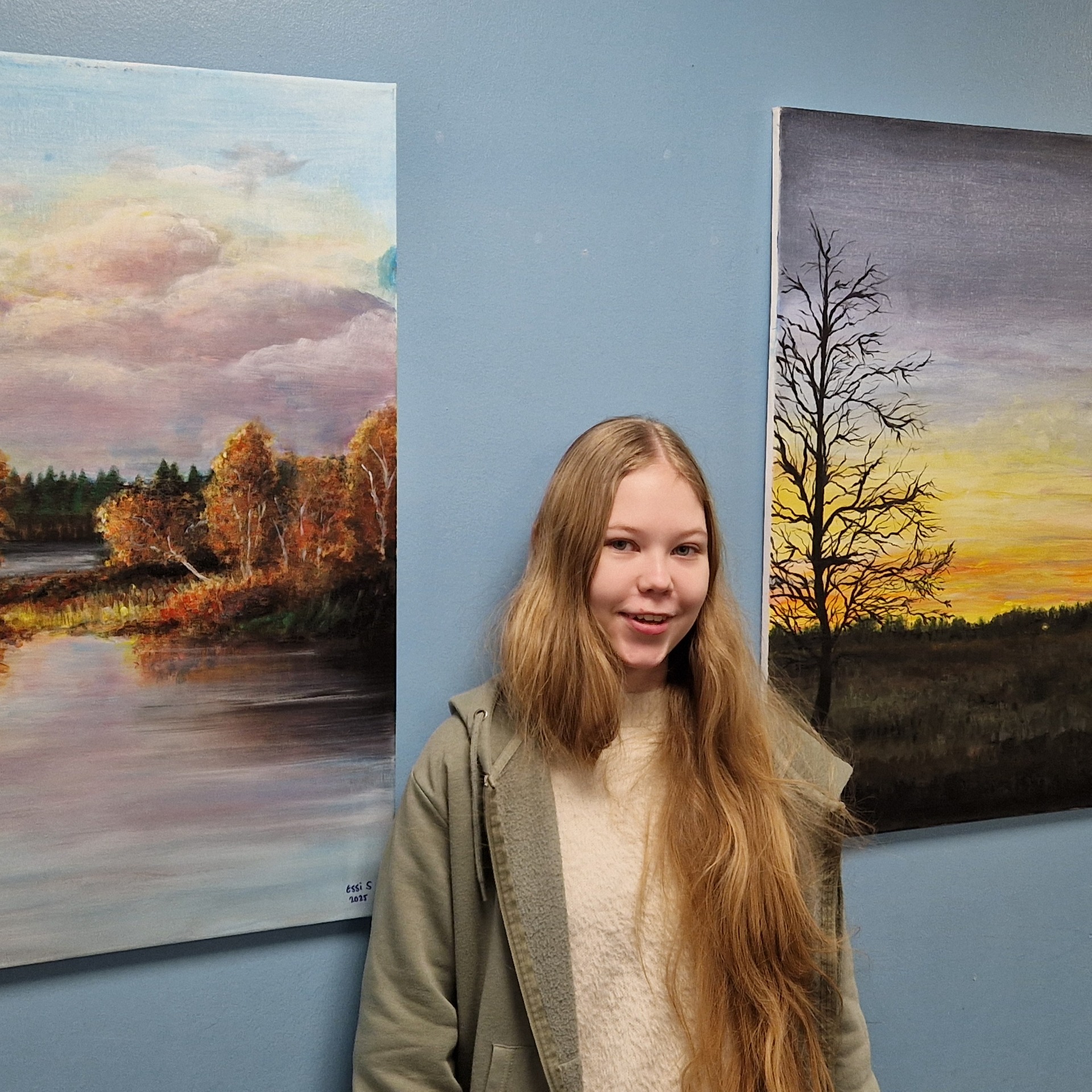 Yläasteella on tämän lukuvuoden aikana toteutettu oppilastyönä toinenkin maalausten sarja. Kolmen maisemamaalauksen sarja on sijoitettu käytävälle opettajien huoneen läheisyyteen. Työt teki Essi Saarikoski TET-harjoittelussa. Työt on tehty akryyliväreillä ja ne ovat todella taidokkaita maisemakuvia.