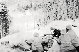 Kohtaus metsässä: "On hällä oikeus tappaa, ja sulla – / mut mistä saitte sen oikeuden? / Ei voi hän vieraaksi majaas tulla: / hän on vihollinen." Yrjö Jylhä suomalainen runoilija.